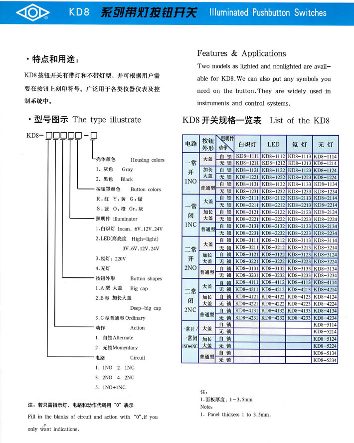 • KD8系列帶燈按鈕開關(guān) 產(chǎn)品型號:KD8系列帶燈按鈕開關(guān)